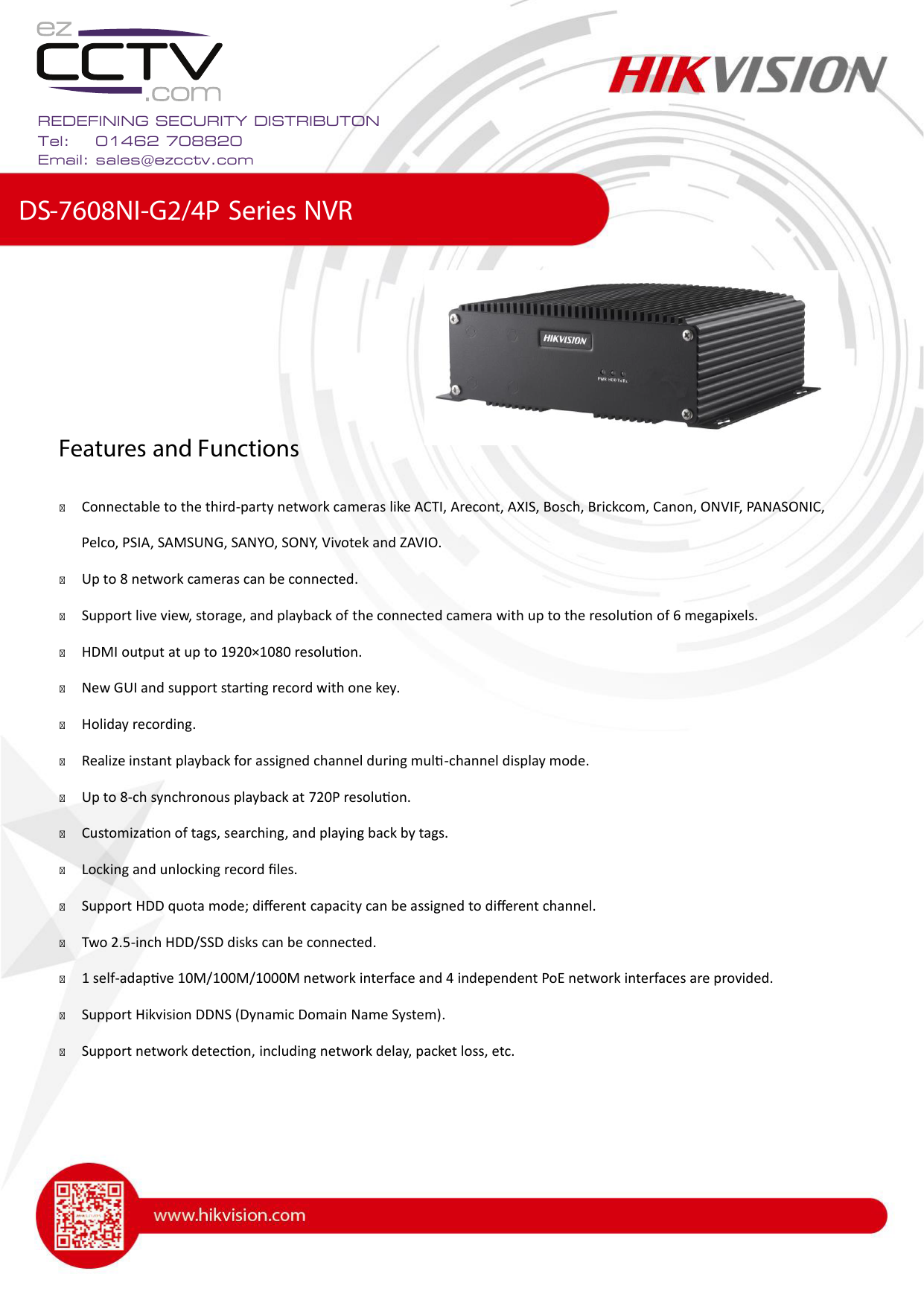 Hikvision Ds 7608ni E2 8p Network Video Recorder Nvr Specifications Hikvision Network Video Recorders Nvrs