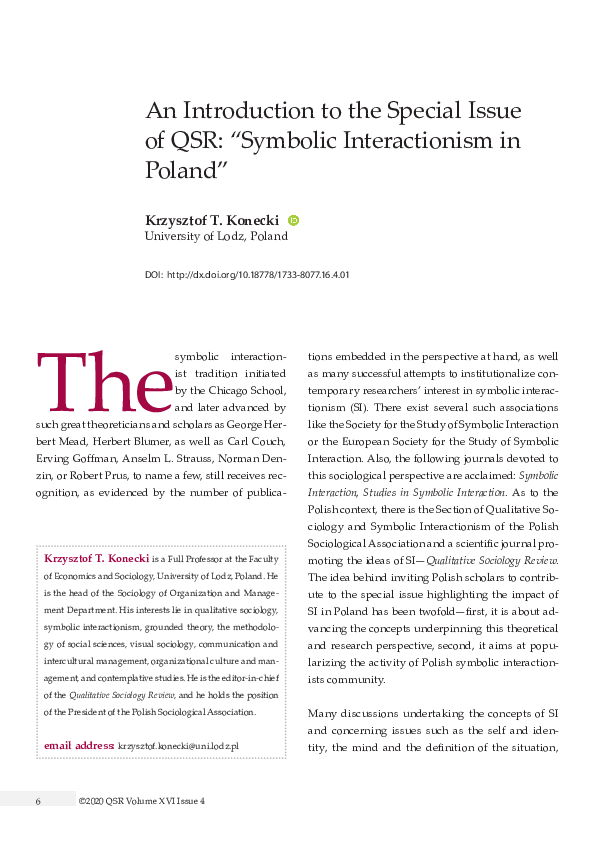 Pdf The Symbolic Interactionist Perspective And Identity Theory