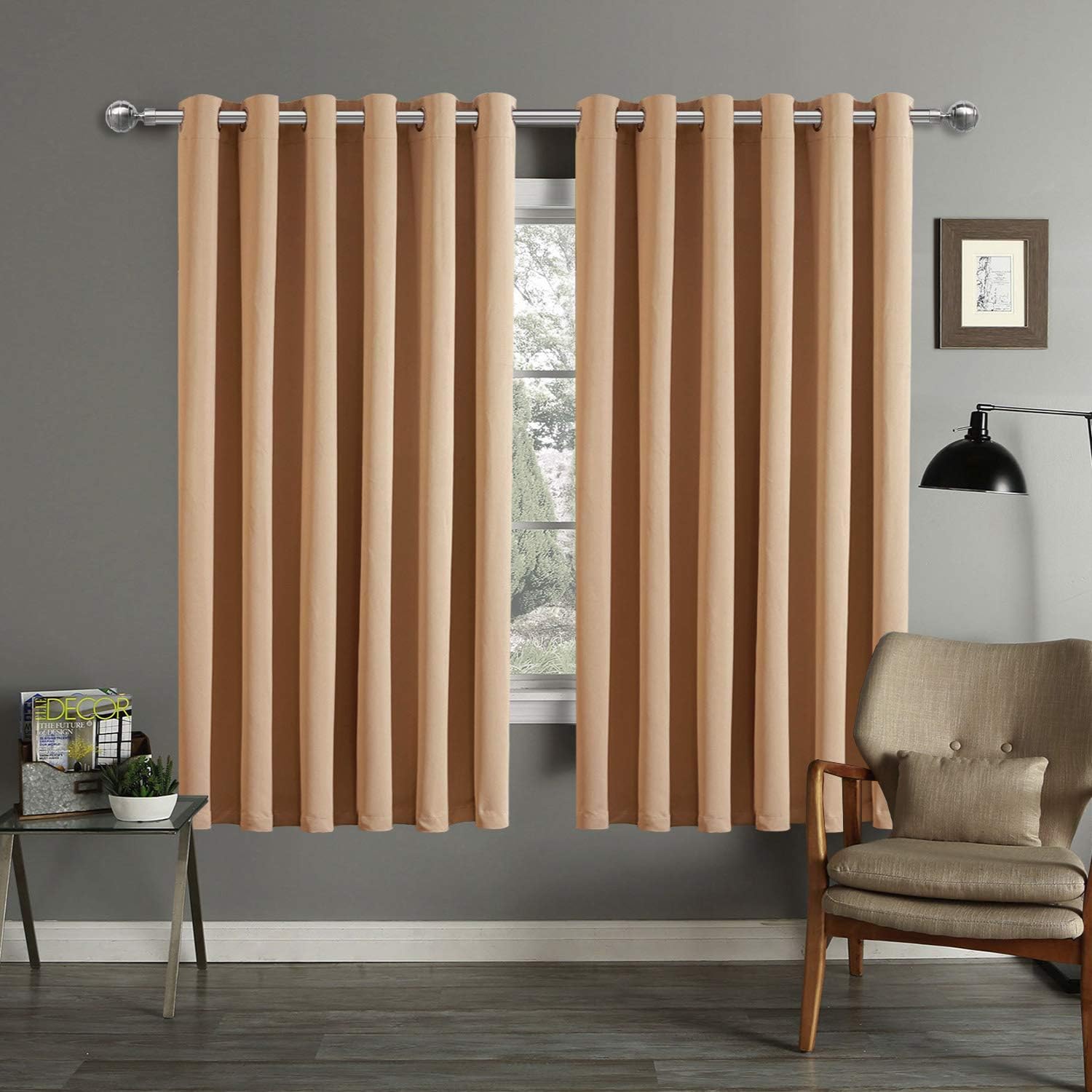 Deconovo Thermal Insulated Eyelet Blackout Curtain One Panel Beige 66 X 54 Inch Amazon Co Uk Kitchen Home