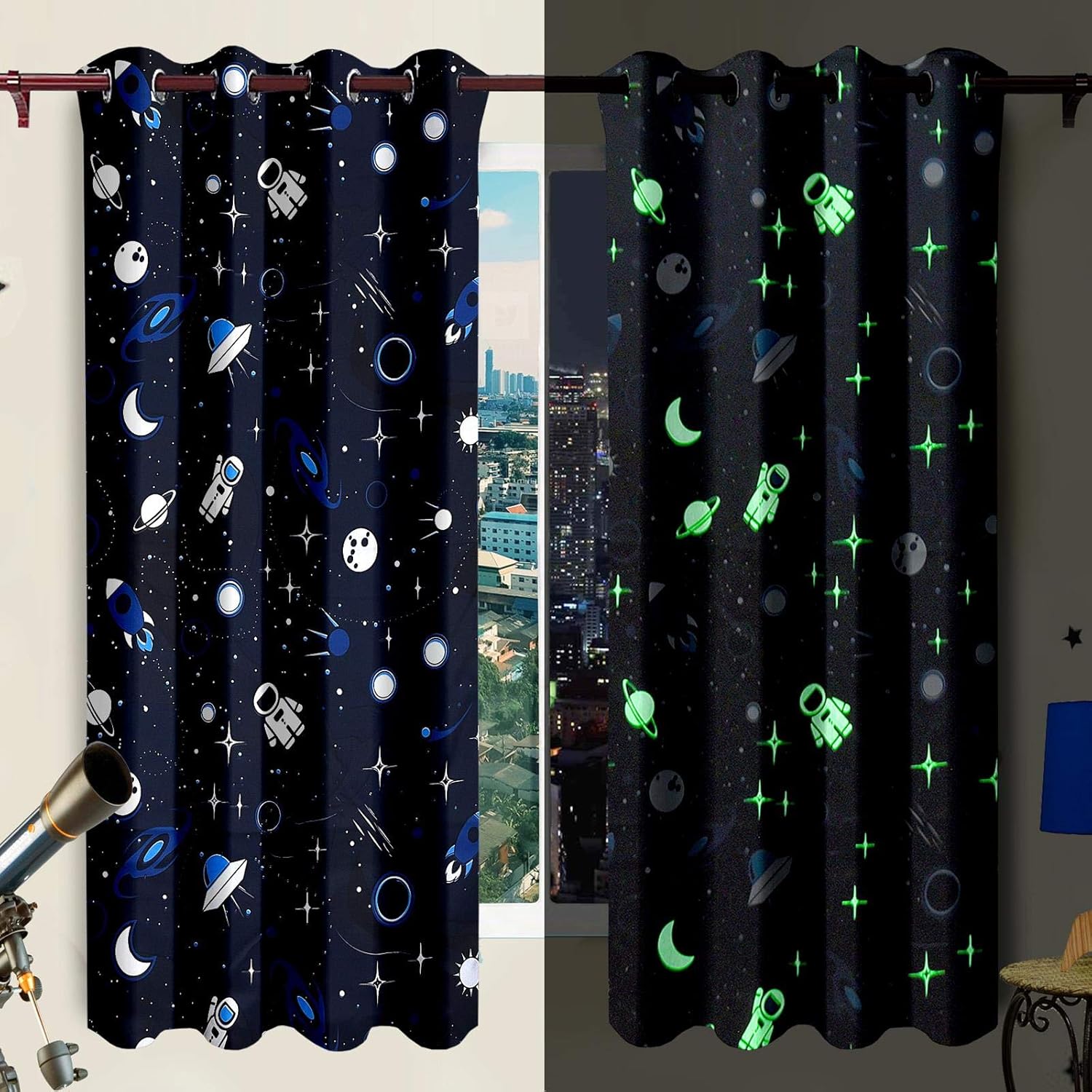 Asab 2 Gsm Glow In The Dark Blackout Curtains Pair Panels For Childrens Kids Bedroom With Chrome Silver Ring Top Eyelets Dark Grey Contellations 66 X 54 Curtains