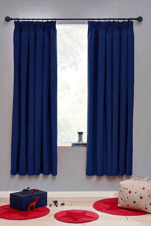 Freedelivery Rayyan Linen Thermal Pencil Pleat Blackout Tape Top Pair Of Curtains With Free Tiebacks 66 X 54 Royal Blue Electronics Others On Carousell