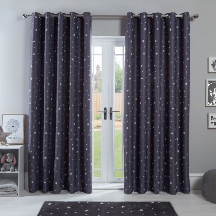 Dreamscene Stars Blackout Eyelet Curtains Charcoal Grey 66 X 72