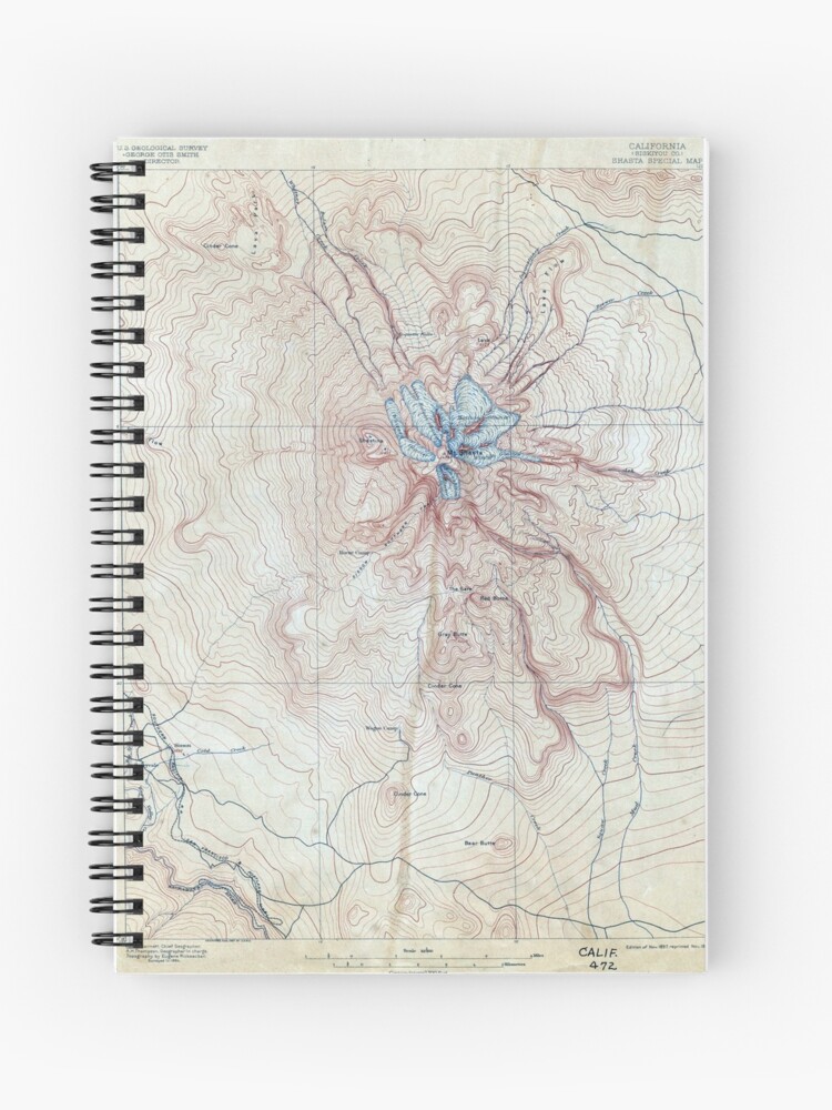 Vintage Mount Shasta Topographical Map California Spiral Notebook By Pdgraphics Redbubble