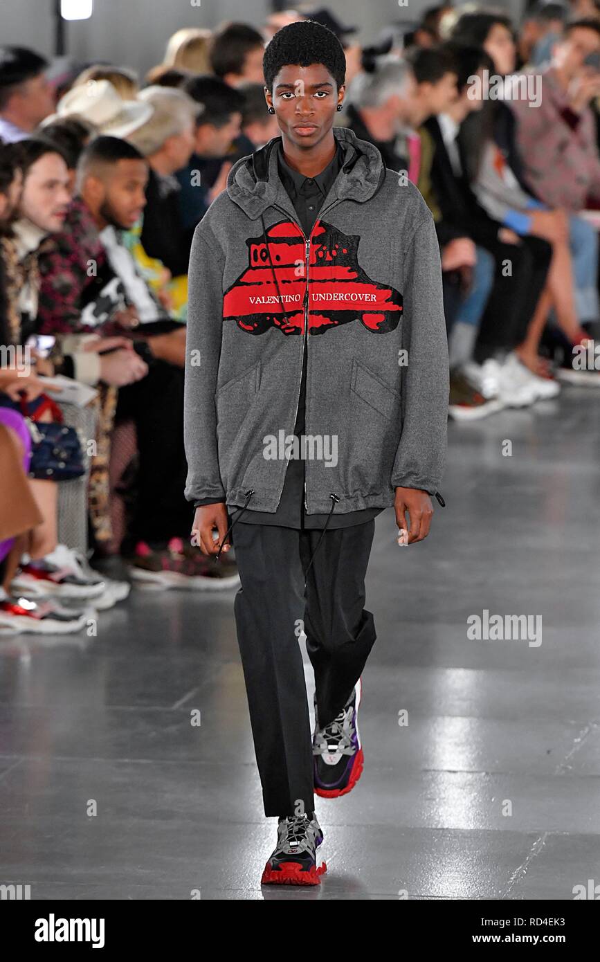 Paris 16th Jan 19 A Model Presents A Creation From Valentino Fall Winter 19 Collection