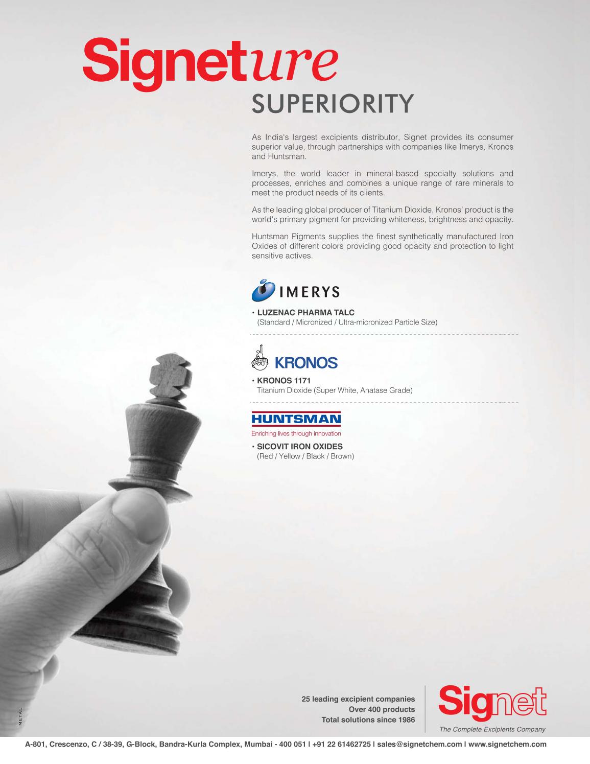 With a core philosophy that emphasis value over price, Signet has always kept its focus towards providing the world’s best pharmaceutical raw materials to Indian scientists and formulators Only products that meet international pharmaceutical standards and made in stateoftheart facilities are sold through Signet Through an extensive partnership networks with the world’s most reputable. A tablet system for prolonged floating in or on gastric fluid for releasing therein pharmaceutically active substances in an alternate succession of substance release and norelease periods is made upof a multilayered core placed in a cupshaped envelope The core is made up of release layers and norelease layers devoid of pharmaceutically active substance, superposed in alternate succession. Venator is a strong, specialized global business with a high value portfolio of innovative pigment and additive products.