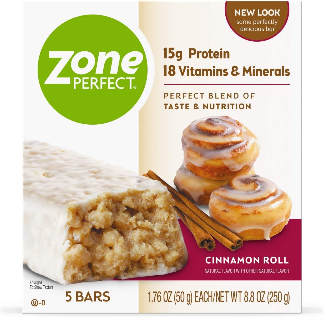 ZonePerfect Nutrition Bars offer delicious taste you’ll love and quality nutrition to help you make the most of every day Each bar has 1015g of protein to help keep you feeling fuller longer, and up to 19 vitamins & minerals,* including antioxidants† for immune support. ZonePerfect AllNatural Nutrition Bar Cinnamon Roll are the easiest and quickest way to get into the Zone They are hands down the best tasting bar on the market!. ZonePerfect Protein Bars, Cinnamon Roll, 15g of Protein, Nutrition Bars With Vitamins & Minerals, Great Taste Guaranteed, 5 Bars Average Rating stars out of 5 stars.