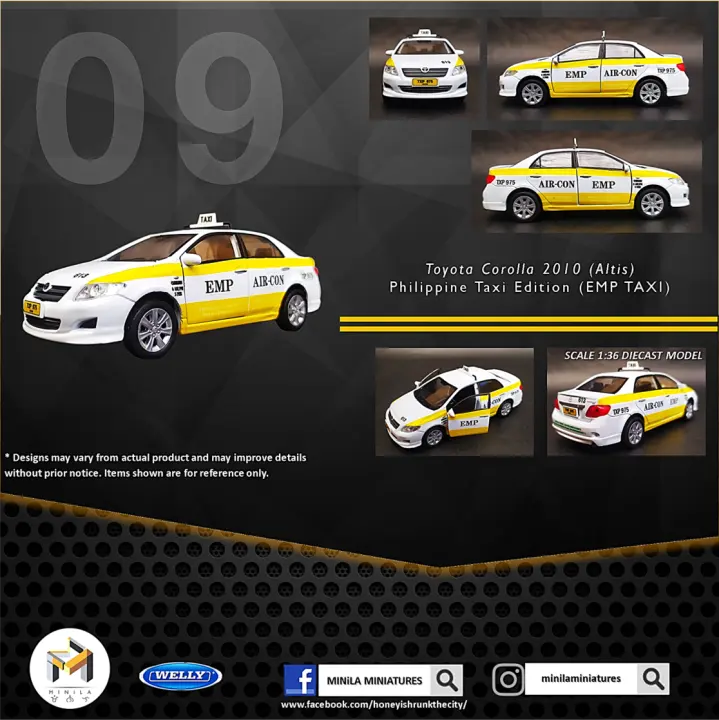 09 Minila Miniatures 1 36 Scale Toyota Altis Emp Taxi Philippine Taxi Edition Lazada Ph
