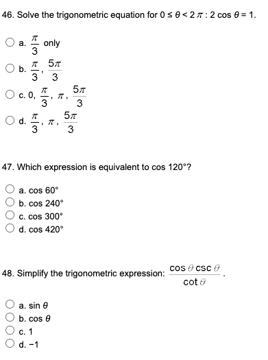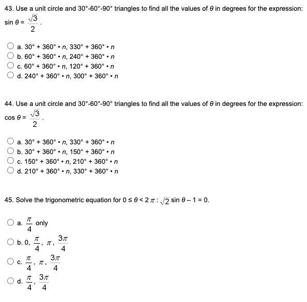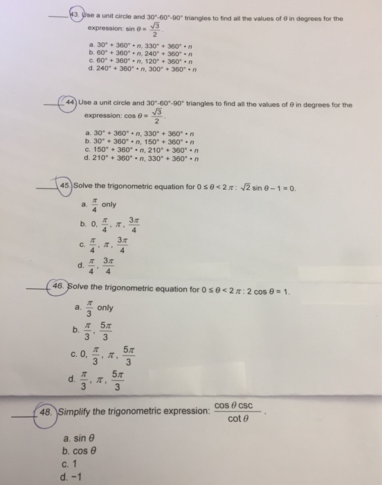Solved 43 3 Use A Unit Circle And 30 60 90 Triangles Chegg Com