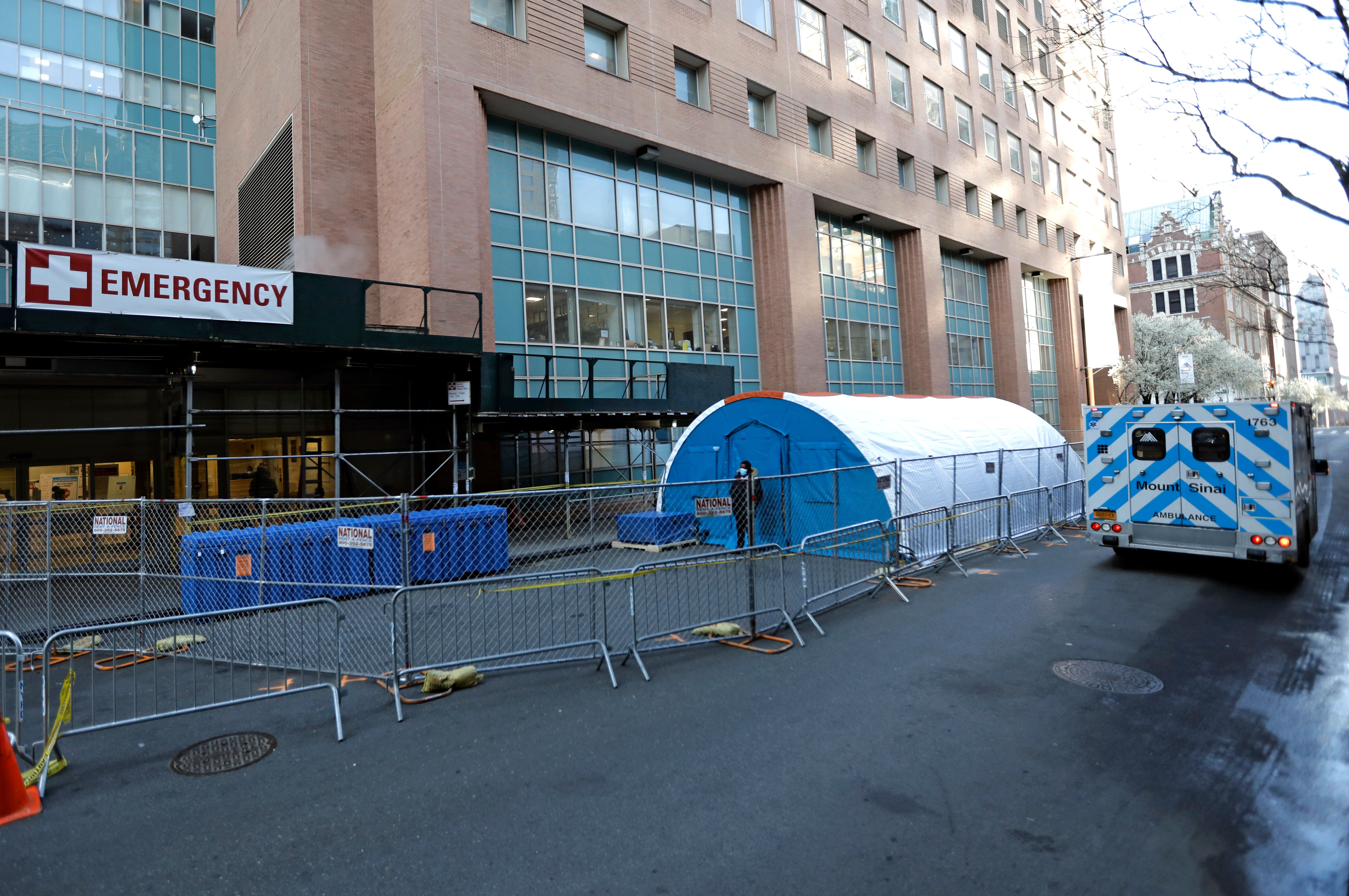 FILE PHOTO A healthcare professional takes blood to test for antibodies at Mt Sinai Hospital as the spread of the coronavirus disease (COVID19) continues in the Manhattan borough of New York. The Mount Sinai dilemma comes as President Biden is seeking to make good on his promise for the US to administer at least 100 million COVID19 shots in his first 100 days in office. The white tents of the Samaritan's Purse field hospital stand in a field in Central Park across the street from Mt Sinai Hospital on May 4, , on the Upper East Side neighborhood in New York City.