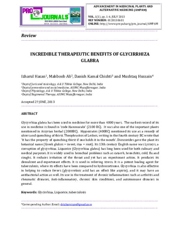 Pdf Incredible Therapeutic Benefits Of Glycirrhiza Glabra Izhar Dr Academia Edu