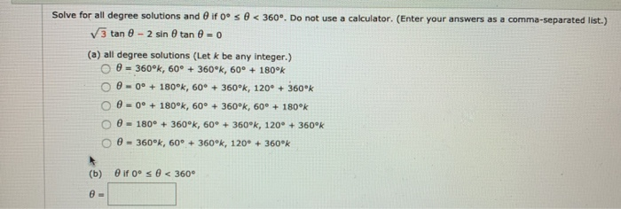 Solved Solve For All Degree Solutions And If Dºse 360 Chegg Com