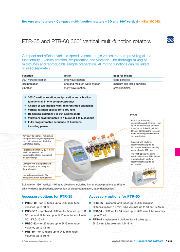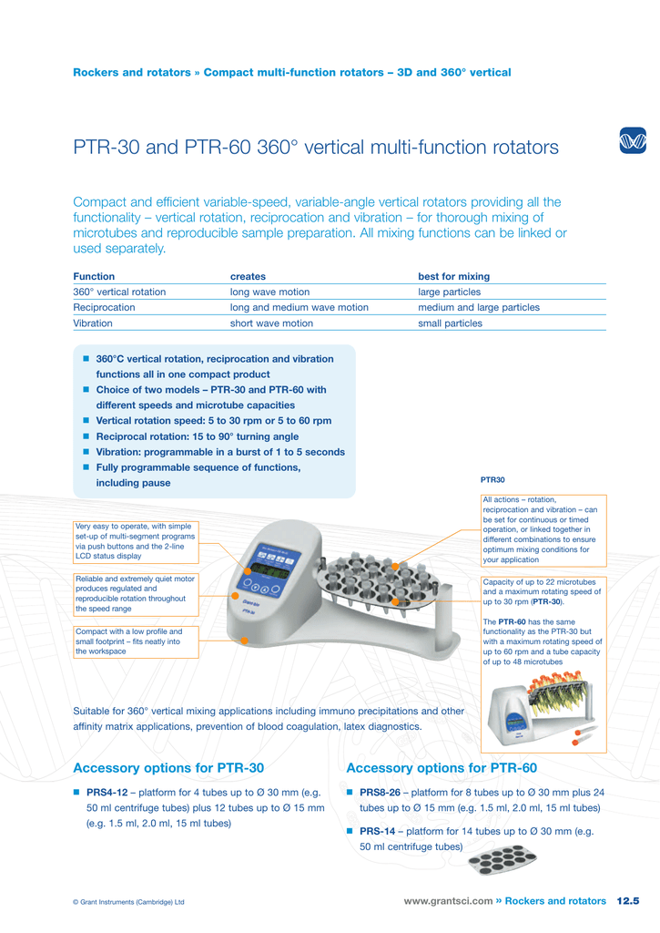 Ptr 35 And Ptr 60 360 Vertical Multi Function Rotators From Grant Instruments Ltd Selectscience
