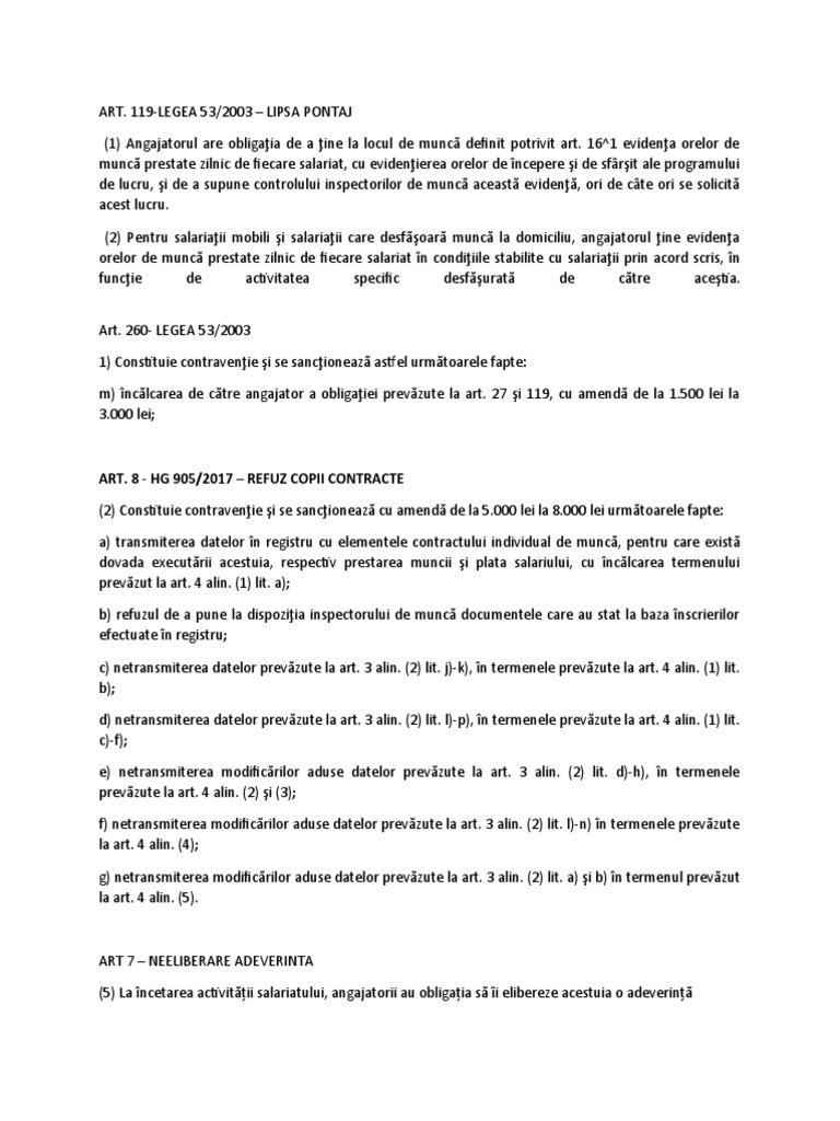 LEGEA 53/03 Codul Muncii actualizata la 604 cu Legea 37/ Formatul *Pdf contine imagini cu Linkuri catre articole si Instrumente profesioniste de HR care includ Know How si Experienta relevanta de business din organizatii de succes Fiti incurajat(a) sa va dezvoltati!. Juridic al contravenţiilor, aprobată cu modificări şi completări prin Legea nr 180/02, cu modificările şi completările ulterioare ART 18 Prezenta lege intră în vigoare la 30 de zile de la data publicării în Monitorul Oficial al României, Partea I Această lege a fost adoptată de Parlamentul României, cu respectarea. CODUL MUNCII, Legea nr 53/ 03, Republicata si actualizata Codul muncii actualizat prin HG nr 935/19 pentru stabilirea salariului de baza minim brut pe tara garantat in plata;.