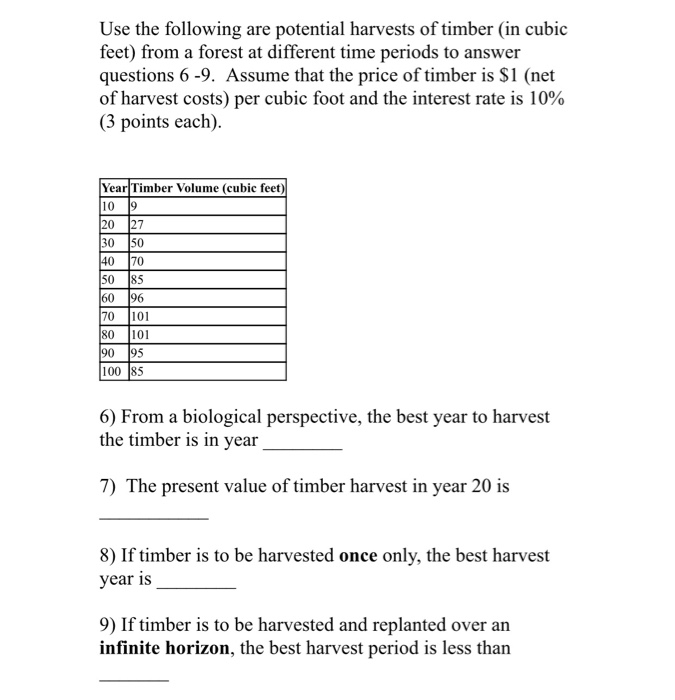 Solved Use The Following Are Potential Harvests Of Timber Chegg Com