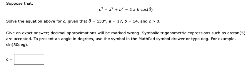 Solved Suppose That C2 B2 2 A B Cos 0 Solve The Chegg Com