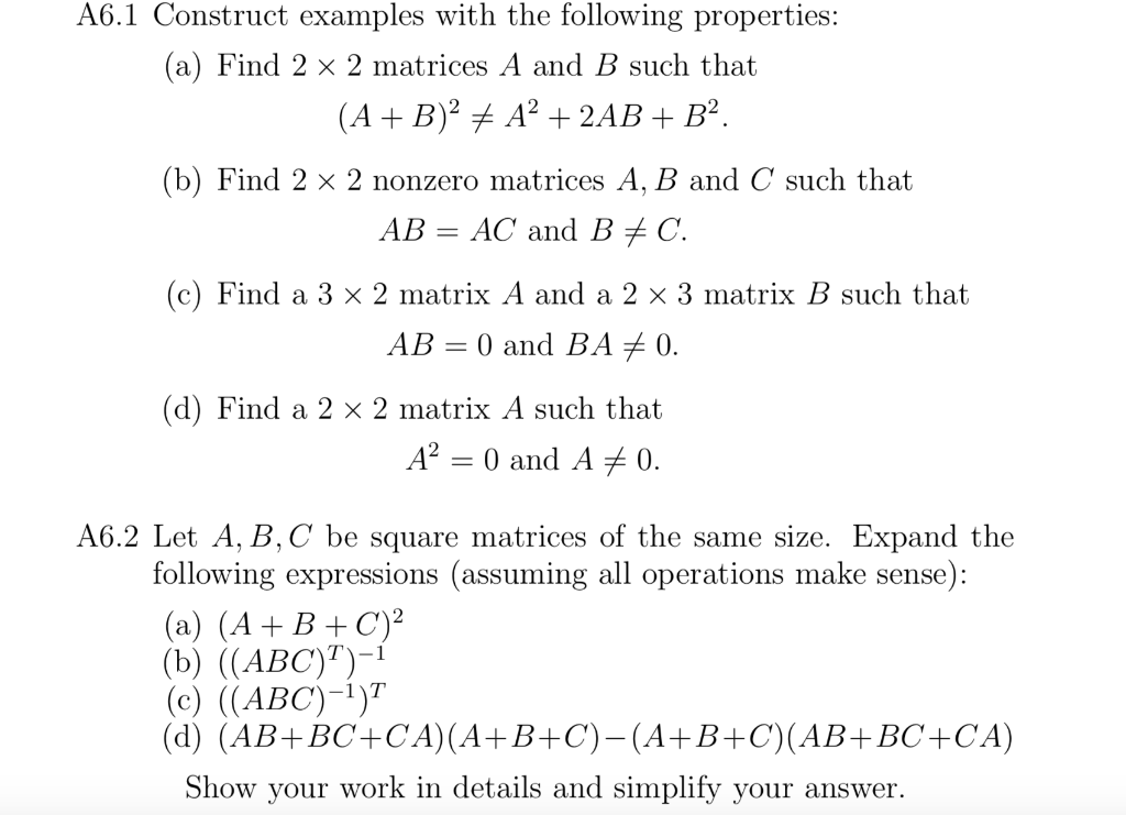 Solved A6 1 Construct Examples With The Following Propert Chegg Com