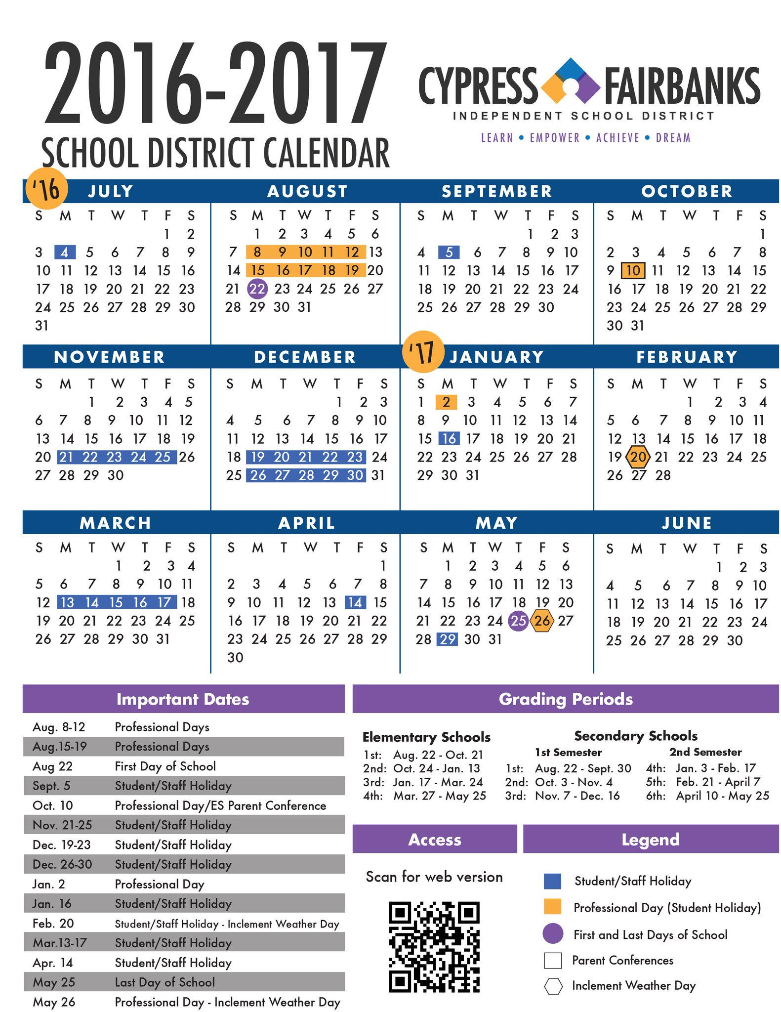 Cypress Fairbanks Isd Cfisdboard Approves 16 17 Instructional Calendar T Co Itld1fuxmf T Co Qemzfnhjcm