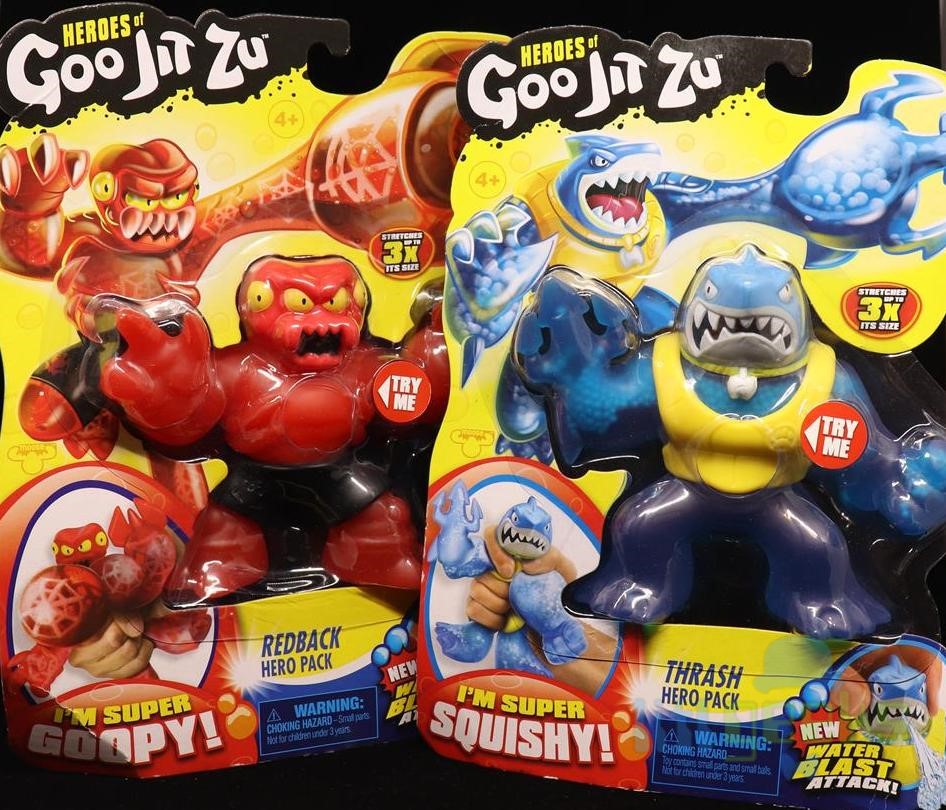 Every Goo Jit Zu Hero has a different goo filling and mesmerizing texture As you squish, twist and stretch them, their inner goo power emerges Heroes of Goo Jit Zu Redback the Spider Hero Pack RRP $ 999 USD Heroes of Goo Jit Zu Gigatusk the Elephant Hero Pack RRP $ 999 USD. The Heroes of Goo Jit Zu are the squishiest, stretchiest and gooiest action figures ever!. Just as squishy and stretchy as before but now with their Aquablast energy and weaponmorphing arms, they are powerpacked to smash the enemy!.