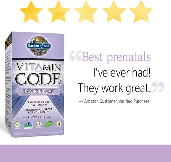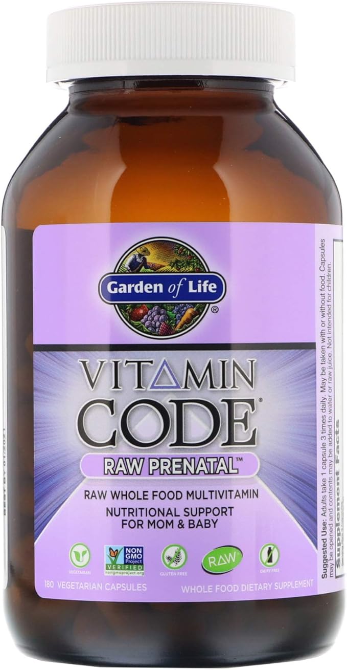 As a pregnant woman, you want only the best for your unborn baby—and so does Garden of Life® Specifically designed to meet the unique needs of women during preconception, pregnancy and lactation, Vitamin Code RAW Prenatal is raw, vegetarian, glutenfree and dairyfree. Product Description Size180 Count (Pack of 1) Product Description Garden of Life Vitamin Code raw prenatal is a comprehensive whole food multi nutrient formula, specifically formulated to meet the unique needs of women during pre conception, pregnancy and lactation. Raw Whole Food Supplement Live Probiotics & Enzymes 23 Organically Grown Fruits & Veggies No Binders or Fillers Non GMO Project Verified NSF Certified GlutenFree Whole Food Multivitamin Nutritional Support For Mom & Baby Kosher Dietary Supplement Certified B Corporation What Raw Means No high heat, synthetic binders,.