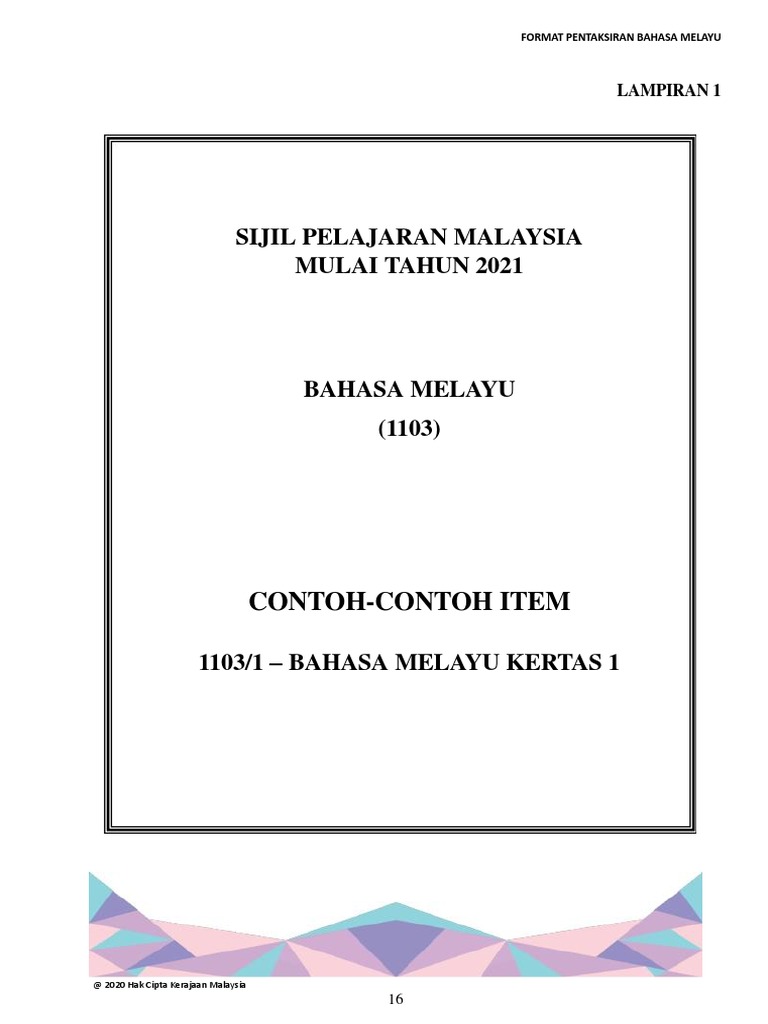 Format Pentaksiran Contoh Item Bahasa Melayu Spm 1103 Mulai 21