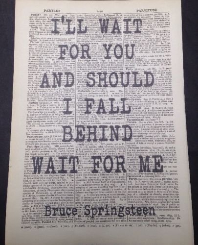 Can you sing along to this quiz without cheating?. Bruce Springsteen Lyrics Farmhouse Sign Anniversary Gift for Her I'll Wait For You Wait For Me Lyrics Sign Personalized Wedding Sign RELOVEDLUMBER From shop RELOVEDLUMBER 5 out of 5 stars (7,176) 7,176 reviews $ 5499 FREE shipping Only 3 available and it's in 3 people's carts. But I'll wait for you And if I should fall behind Wait for me Now everyone dreams of a love lasting and true But you and I know what this world can do So lets make our steps clear that the other may see And I'll wait for you If I should fall behind Wait for me Now there's a beautiful river in the valley ahead There neath the oaks bough soon we.