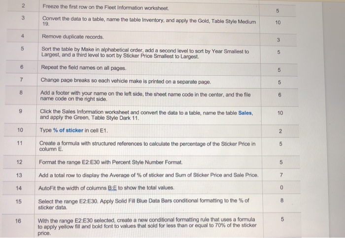 Solved D E F G H B 1 Vin Make Model 2 Bmw 5 S Chegg Com