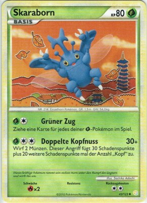 Pokemon Trading Cartas Game Heartgold Soulsilver Num 43 123 Skaraborn Aleman Ebay