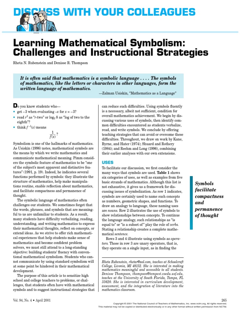 Learning Mathematical Symbolism Function Mathematics Exponentiation