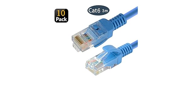 Amazon Com Cat 6 Network Cable Ethernet Lan 10 100 1000 Gigabit Patch Lead Blue 30m Size 3 M 10 Pack Electronics