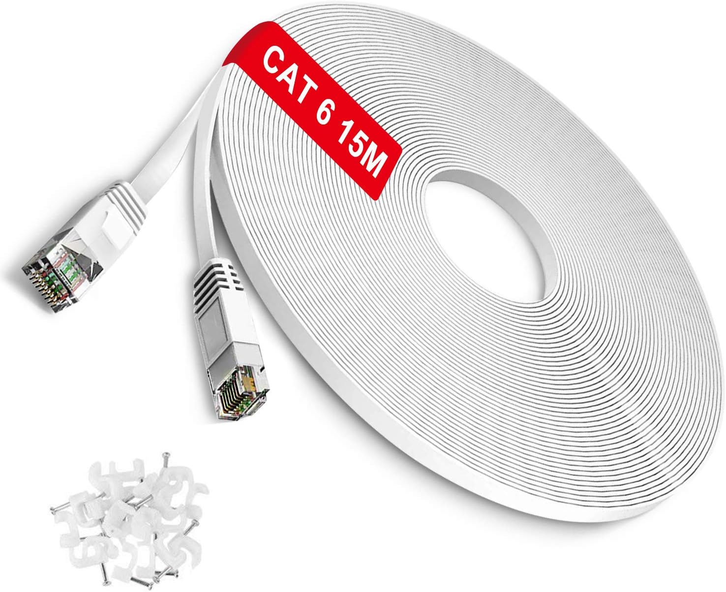 Tbmax 15m Ethernet Cable Cat6 10 100 1000mbit S High Speed Network Cable 15m Flat Gigabit Internet Lan Cable With Rj45 Connectors Utp Patch Cable For Modem Ps5 Compatible With Cat5 Cat5e White Amazon Co Uk Computers