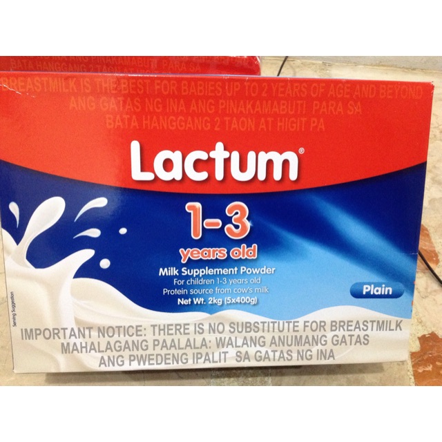 Nido Junior 1 to 3 years old and Lactum 13 years old have this nutrition Oligosaccharides “It is used as prebiotics which act as food for probiotics” Bear Brand Jr 13 years old and Nido Junior 1 to 3 years old have this Inulin It is a prebiotic that is used for digestive health Lactum 13 years old has it. ALACTAGROW MILK SUPPLEMENT 13 YEARS OLD 800G ₱ Tax included Quantity Add to cart InStock Share Price ₱ Quick view LACTUM 6 POWDERED MILK Price ₱. Re Lactum 13 « Reply #44 on May 18, 12, pm » Siguro naninibago lang mga babies nyo sa lasa kasi kakapalit nyo pa lang naman, masasanay din yan mga mommies.