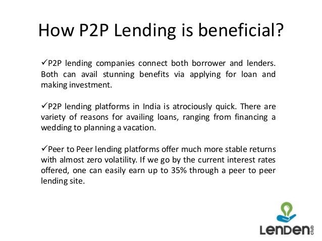 In my opinion, by far the best peer to peer lending for investors” RW Lender since 15 “I presently enjoy industry leading interest rates of 10% 14% on my loans, paid throughout the month. Peer to Peer lending offers an alternative to the borrower to taking a conventional loan from a bank This is a sort of lending online platform where loans can be taken and paid back along with the arranged rate of interest RBI is the regulatory authority for Peer to Peer lending license P2P lending is a lending syst. Moreover, borrowers can easily borrow at lower interest rates even after the P2P company has charged its fee for making the match between the lender and borrower The Face of Peer to Peer Lending in India Peer to peer lending can be identified as a disruptive technology;.