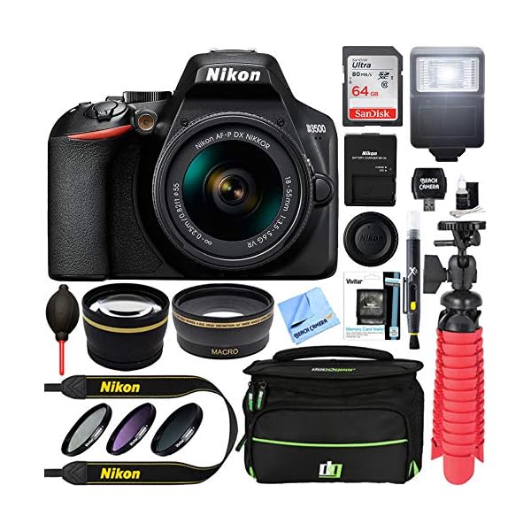 Nikon D3500 24 2mp Dslr Camera With Af P Dx Nikkor 18 55mm F 3 5 5 6g Vr Lens Bundle With 64gb Memory Card Camera Bag Best Cam Accessories