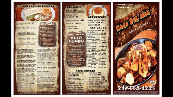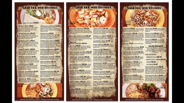 Casa Del Mar Mexican Bar Grill Food Menu