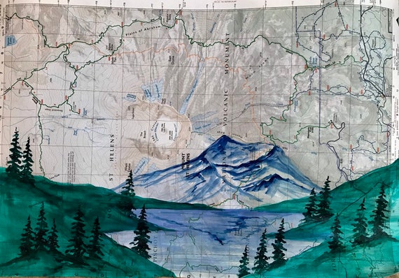 Mt St Helens Topographic Map Painting Hiking Art Mountain Etsy