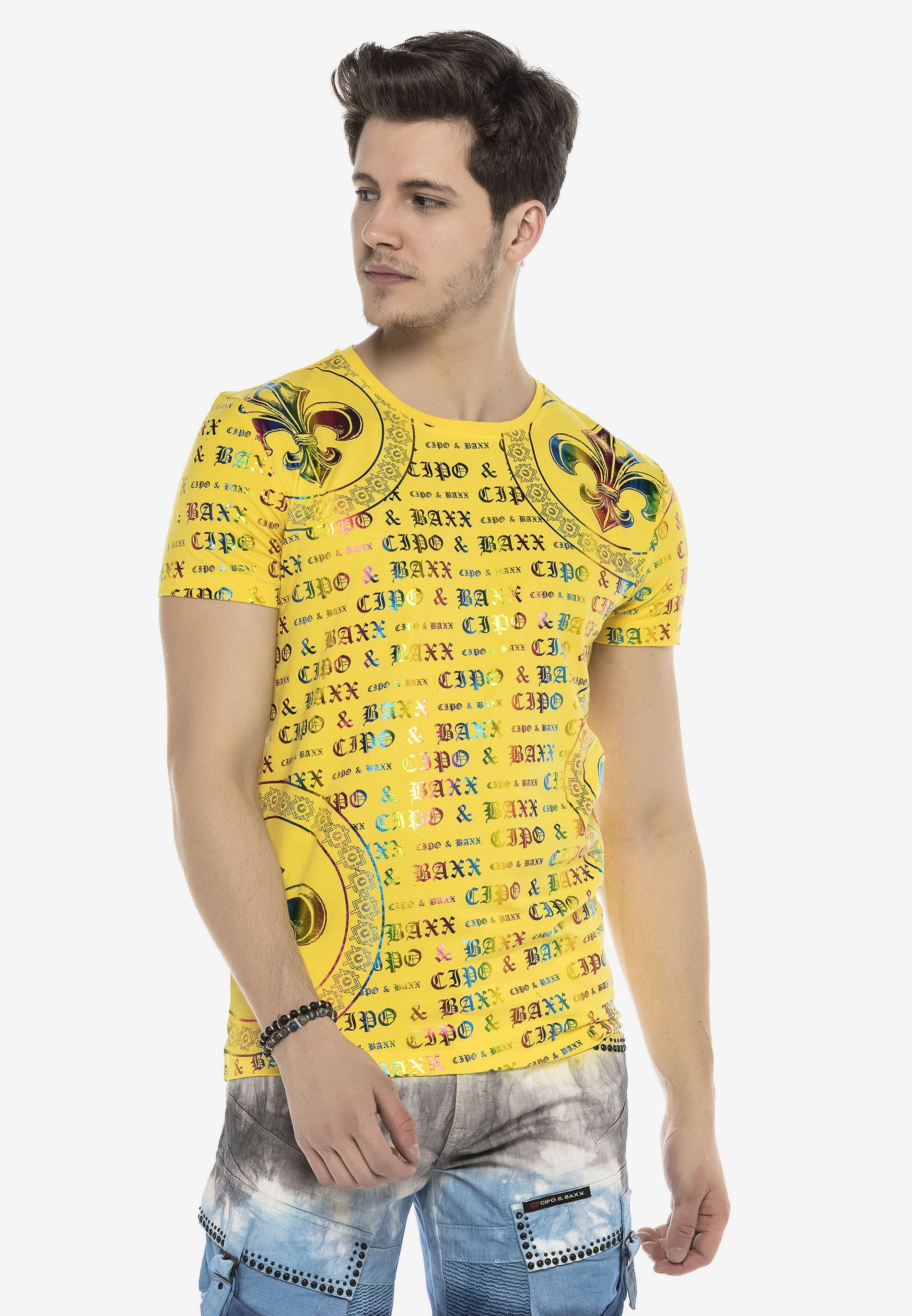 Cipo Baxx Mit Hologramm Logo Print Print T Shirt Gelb Multi Coloured Zalando De