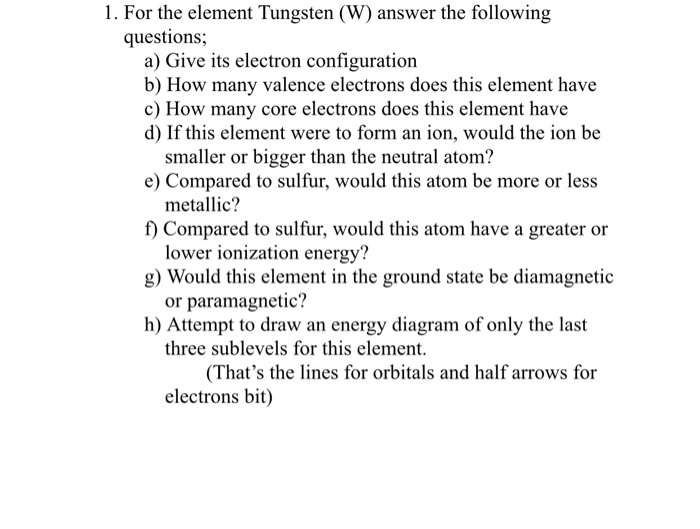 Solved 1 For The Element Tungsten W Answer The Followi Chegg Com