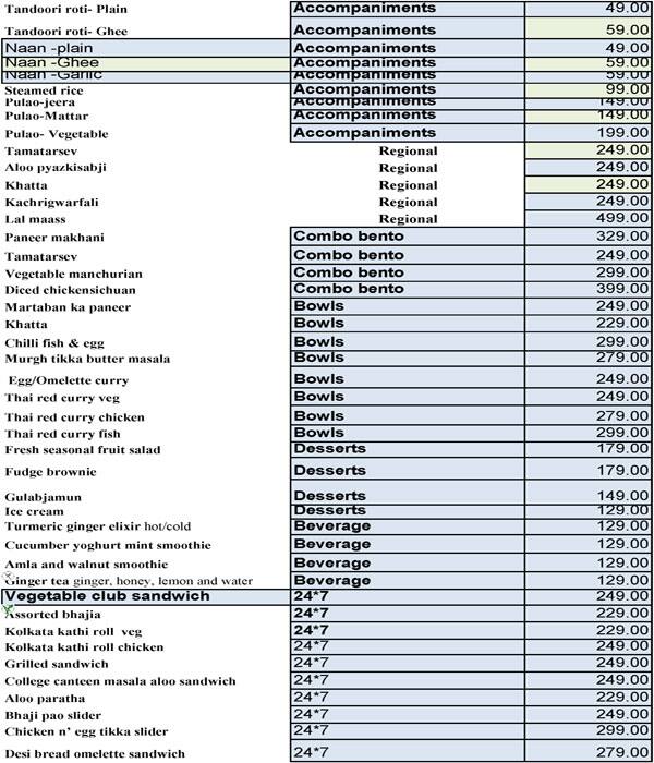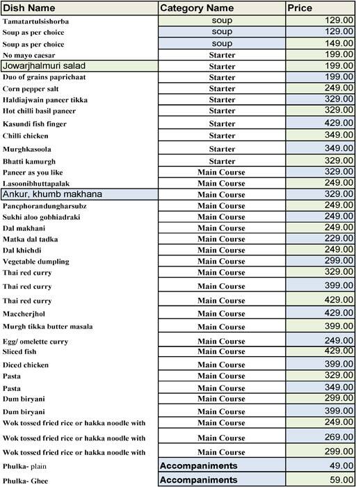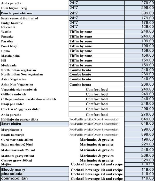 Zone By The Park Jaipur Menu