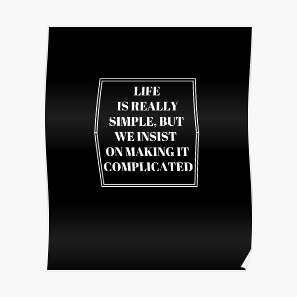 Life is really simple, but men insist on making it complicated” —Confucius “Only through love can we obtain communion with God “Life is really simple, but men insist on making it complicated” —Confucius “Only through love can we obtain communion with God “Love and spirituality are inseparable, for there can be no love without a. Life is really simple, but we insist on making it complicated – Confucius Sometimes, the simple things are the best That is a very personal decision, and depends on your interest and tolerance for complexity I find that, within certain bounds, I thrive on complexity @philo_quotes, complicated, Confucius, life, simple. Life is really simple, but we insist on making it complicated If we don’t know life, how can we know death?.
