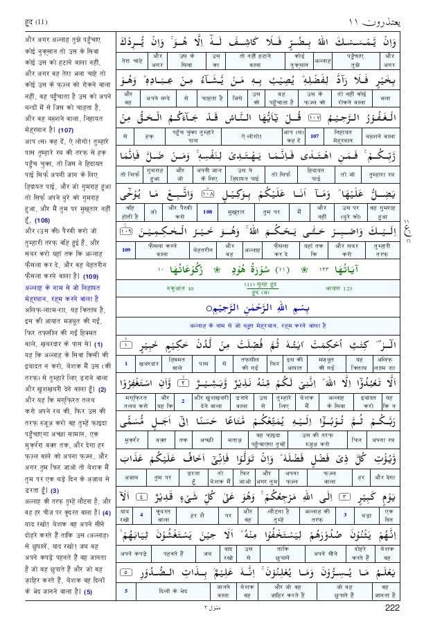 Quran Surah 11 هود Hud ह द Hindi Translation ह द अन व द Wor