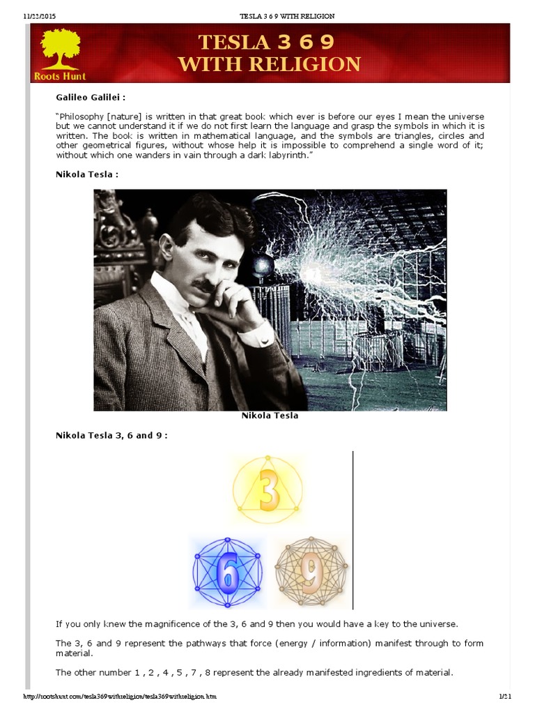 I will show you step by step how 369 Tesla Code manifested $10, for me, and how you can use 3 6 9 in everyday life!. Nikola Tesla claimed that the numbers 3,6, and 9 had a very importnat meaning in the universe Tesla considered himself an environmentalist As we could probably deduce from his work on Free energy, Teslawas “very concerned about the fact that we were using up the Earth’s resources too fast. Tesla was obsessed with numbers 3, 6 and 9 He understood a fundamental fact, unknown to many, which is the universal language of mathematics;.