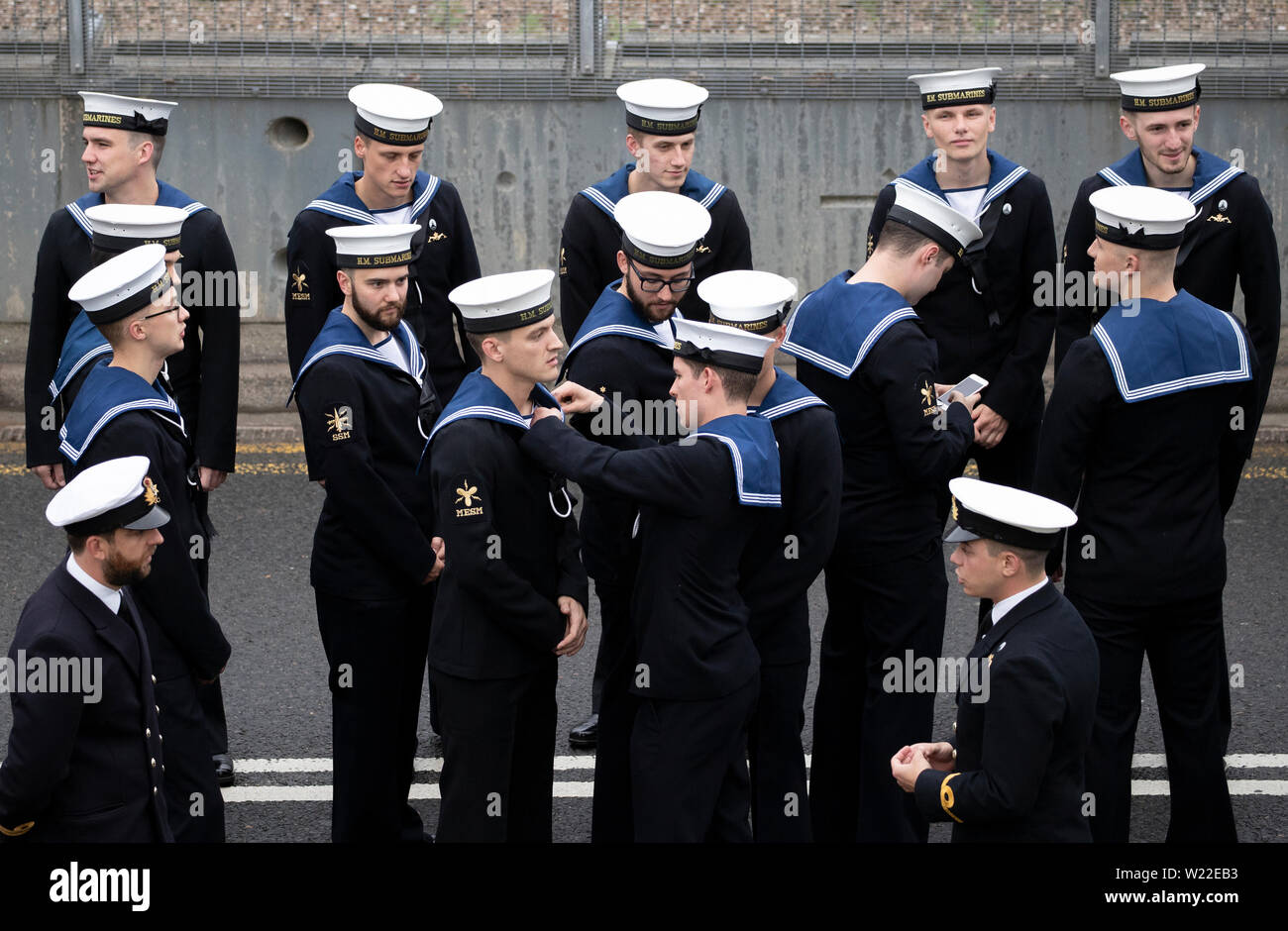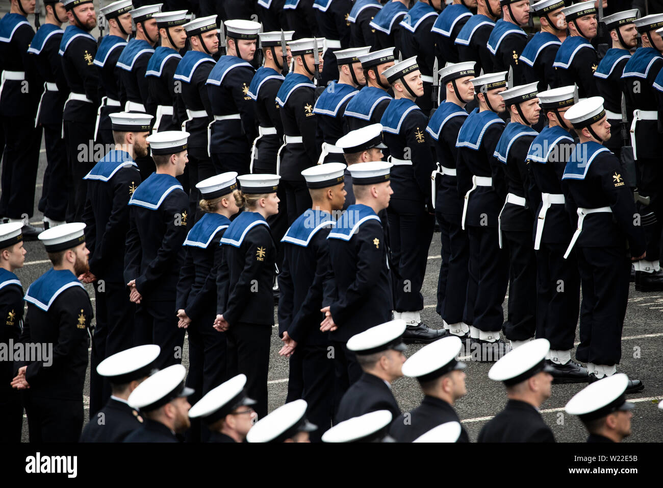 Members Of The Royal Navy Submariners Before The Parade In Front Of The Princess Royal Other Serving Members Of The Royal Navy Veterans Families And Support Workers At Hm Naval Base Clyde