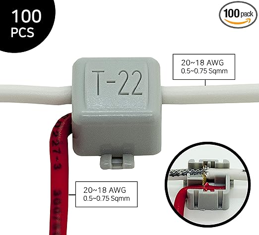 Alphao Non Stripping Electrical Wire Connectors Wire Connectors Electrical Connectors Wire Nuts Automobile T Tap Connectors Wire Terminals One To One Junction Connection T 22 pcs Amazon Com