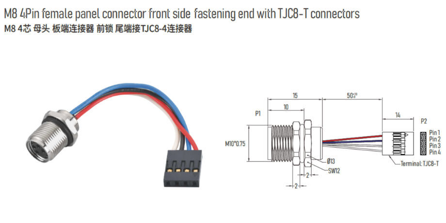 China M8 4 Pin Female Panel Mount Connector Front Side Fastening End With Tjc8 T Connectors 054 On Global Sources M8 Connectors M12 Connector Front Fastened Connector