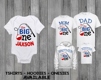 The Big One Fishing Theme Boys First Birthday Baby TShirt A colorful fishing themed first birthday shirt to help celebrate 'The Big One' Pops of red, green, orange, and blue fish and gear provide a colorful contrast to the distressed wood background Clipart ©MyClipArtStore http//wwwmyclipartstorecom. Fishing Desserts & Party Food The desserts were super fun to make I really wanted to handmake as much of the food as possible Of course, I couldn’t resist splurging on some adorable fishing cookies I found from Case Bakes (shown above)!!!. The Big One Birthday Shirt The Big One Fishing Birthday Shirt Boy's First Birthday Shirt Boy's Fishing Name Birthday Shirt Care instructions All items can be washed on a cold/gentle cycle and tumble dried on low heat or air dried Custom and personalized orders All items can be personalized with any wording, name or age.