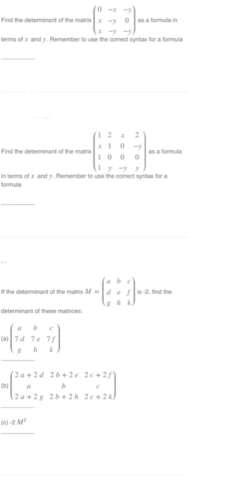 Solved 0 X Y Find The Determinant Of The Matrix 0 As A Fo Chegg Com