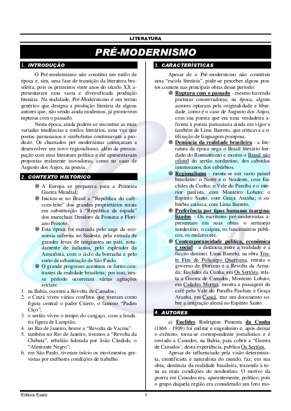 O Que Foi O Pre Modernismo Na Literatura Provas Discursivas
