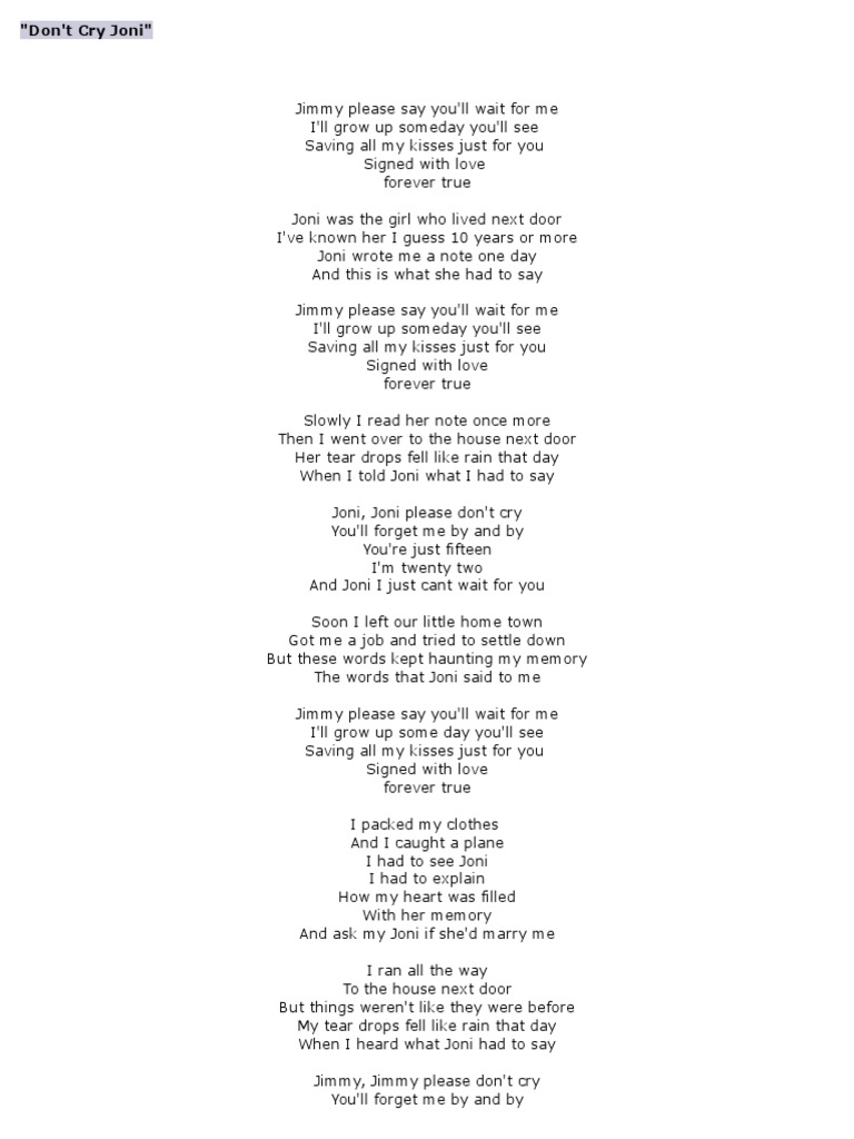 Dont Cry Joni Lyrics Leisure