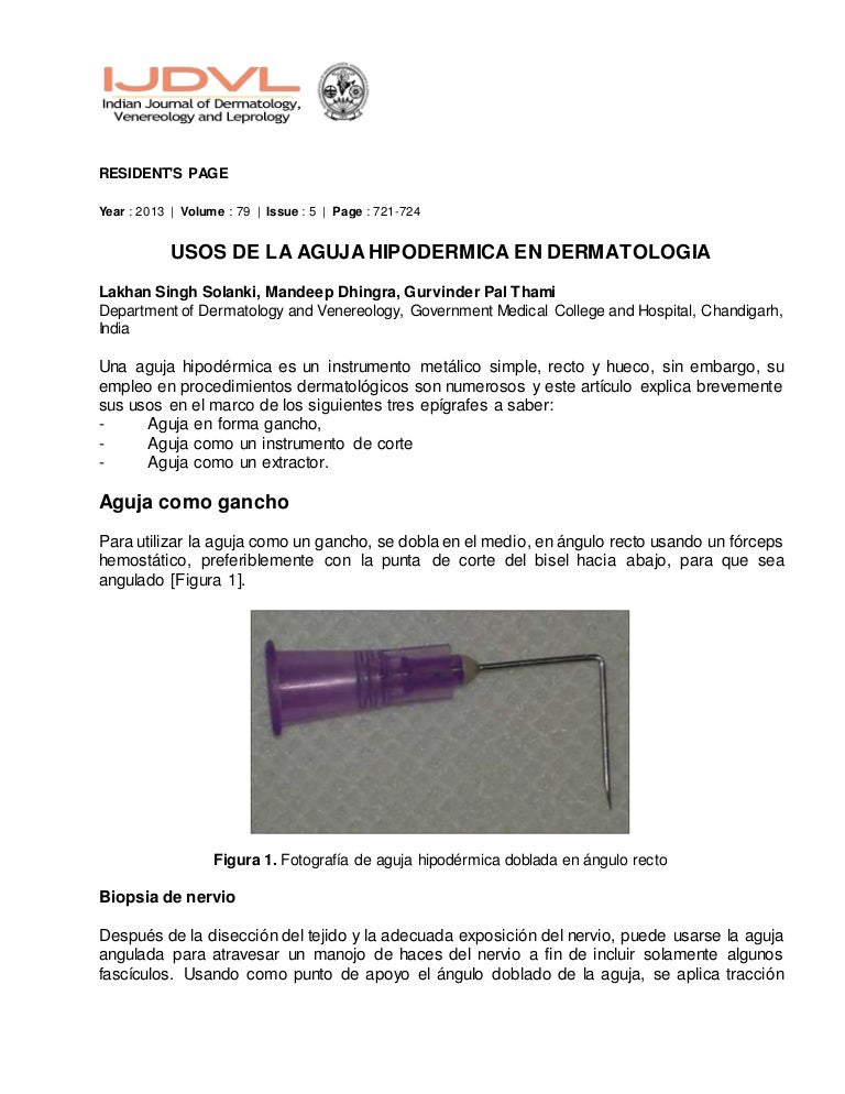 Usos De La Aguja Hipodermica En Dermatologia