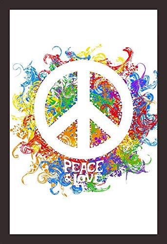 Mad Masters Hippie Symbol Over Colorful Background Idea Peace Freedom Love Antiwar Spirituality Framed Painting Wood 18 Inch X 12 Inch Textured Uv Reprint Amazon In Home Kitchen